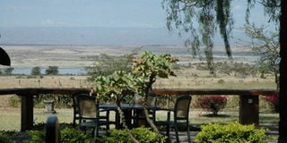 View of Lake Elementaita from Lake Elementaita Lodge terrace.