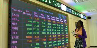 A Nairobi Securities Exchange staff monitors trading on the electronic board. PHOTO | FILE