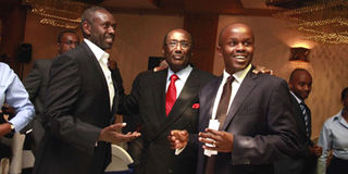 Centum CEO James Mworia (right), chairman Chris Kirubi (centre) and Nairobi Securities Exchange vice-chairman Bob Karina at a past event. PHOTO | DIANA NGILA | NATION MEDIA GROUP