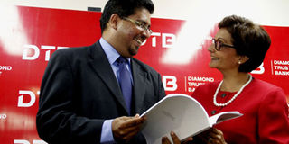 Diamond Trust Bank chief executive Nasim Devji (right) with CFO Alkarim Jiwa during a Press briefing announcing the bank's launch of Sh3.6 billion rights issue on June 30, 2014. The cash call attracted Sh15.9 billion. PHOTO | DIANA NGILA | NATION
