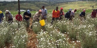 Pyrethrum farmers in Nyandarua, central Kenya. While some say pyrethrum farming in Kenya is losing its lustre, Isaac Mwangi Karanja is praising the crop he started cultivating in 1975. . File