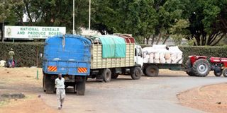 Trucks deliver maize at an NCPB depot. A government-backed commodities exchange may be in place over the next two years after the Ministry of Trade kicked off search for a consultant to oversee its establishment yesterday. FILE