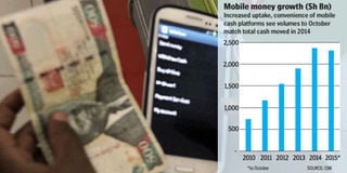 The latest Central Bank of Kenya (CBK) data shows that mobile payments grew by 19 per cent to Sh2.31 trillion as at the end of October, nearly equalling the Sh2.37 trillion handled in 2014.