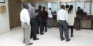 Customers at a banking hall in Nairobi. FILE PHOTO | NMG