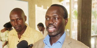 ACTING CEO OF THE INSURANCE REGULATORY AUTHORITY GODFREY KIPTUM (RIGHT) AND DANIEL KIANGE, MANAGER TRADE FACILITATION AT KENTRADE. FILE PHOTO | NMG