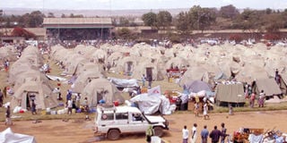 Internally displaced people camp at Nakuru’s Afraha Stadium. Political turbulence following last year’s post-election violence was cited as the greatest threat to the business environment in the country. /Joseph Kiheri