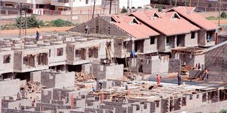 A housing estate under construction. Rental incomes for housing developers dropped by two per cent between July and September even as construction costs continued to rise, further depressing returns for investors in residential property. Photo/FREDRICK ONYANGO