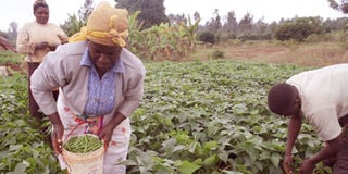 Farmers harvesting French beans. UK-based supermarket giant Tesco is set to ease its rules on what sort of green (French) beans it will import from Kenya in a move expected to cut waste by nearly a fifth. PHOTO | FILE