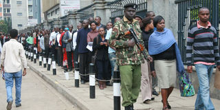 Taxpayers queue outside the Kenya Revenue Authority headquarters to file their income tax returns in June. PHOTO | FILE