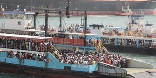 Two ferries cross the Likoni Channel as MT Theresa Arctic (in the background), an oil tanker, enters the Port of Mombasa on July 12, 2017. PHOTO | WACHIRA MWANGI | NMG