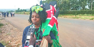 Benta Juma sells flags at K'ogelo ahead of Mr Obama's arrival on July 16, 2018. Photo | Justus Ochieng' | NMG