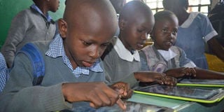 Pupils at Kosawo Primary School in Kisumu use tablets. PHOTO | ONDARI OGEGA | NMG