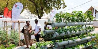 Kenyans Learn various ways of Establishing Smart Farming Units within their homesteads at the National Irrigation Authority Stand during the 2023 Agriculture Society of Kenya (ASK) Mombasa International Show in this photo taken on September 7, 2023.