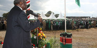 President Kibaki addresses a Yes campaign rally at the 64 stadium, Eldoret on July 16, 2010. The proposed constitution of Kenya seeks to present an improved governance structure that is reflective of the growth and development of the nation to date. Photo/PPS