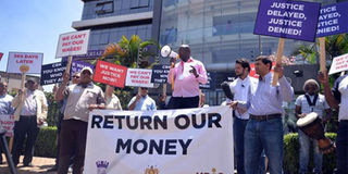 Imperial Bank depositors protest outside the lender’s headquarters on Westlands Road, Nairobi. It is one year since the bank was put under receivership by the Central Bank of Kenya. PHOTO | SALATON NJAU