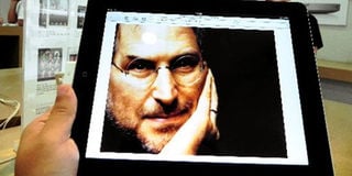 An iPad displays a picture of the late Apple co-founder Steve Jobs at an outlet in Hangzhou, China, last year. The Apple chief, who died in October, left behind popular innovations and a legacy that aspiring innovators could emulate. Photo/Xinhua