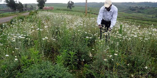 A man tending to his pyrethrum farm. Pyrethrum farming is under a new minister, the old Pyrethrum Board is gone, replaced by the Pyrethrum Regulatory Authority (PRA), and a new chief executive, Alfred Busolo, is now in charge promising a new lease of life to the troubled sector. Photo/FILE