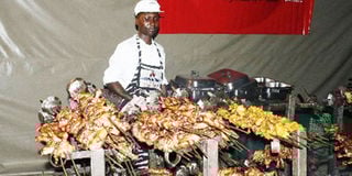Roasting meat at the Carnivore Restaurant in Nairobi. Photo/FREDRICK ONYANGO