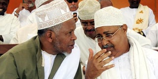 Former Chief Kadhi Hamadi Kassim (left) chats with the late Tahir Sheikh Said at a past Lamu function. PHOTO | GIDEON MAUNDU