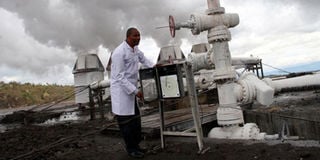 A Geothermal Development Company engineer monitors a geothermal well in Menengai, Nakuru on November 10, last year. PHOTO | SULEIMAN MBATIAH