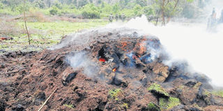 Illegal charcoal burning in Mau forest. PHOTO | FILE
