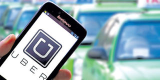 A mobile phone user looks at taxi-hailing app Uber: The firm entered the Kenyan market last year. PHOTO | FILE