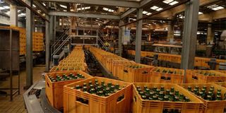 The beer-maker has started packaging its bottled beer brands in carton packs of six to allow customers buy as take-away and return bottles once they finish consuming. FILE PHOTO | NMG