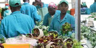 Workers prepare flowers for export at Finlays Chemirei Farm in Kericho. Photo | FILE | NMG