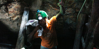 A miner emerges from a mine tunnel at one of the gold mining sites in Migori County in August 2019. PHOTO | ONDARI OGEGA