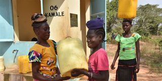 Women fetch piped water from a kiosk in Magarini. FILE PHOTO | NMG
