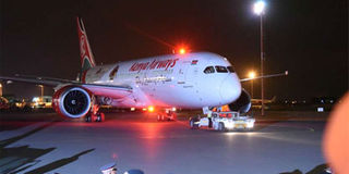 A Kenya Airways plane at JKIA runway. Fuel accounted for 27pc of KQ expenditure last year. FILE PHOTO | NMG