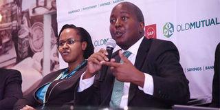 UAP Old Mutual Group chief financial controller Agnes Chege (left) and CEO Peter Mwangi during the announcement of the group’s full year financial results on April 2, 2019. PHOTO | DIANA NGILA