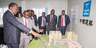 President Uhuru Kenyatta views a model of houses to be constructed at Park Road Estate in Ngara under the affordable housing Pillar of the Big 4 Agenda. FILE PHOTO | NMG