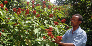 A bixa farmer in Shimba Hills, Kwale County. The bixa crop is locally known as "mrangi", for its bright red fruits that have numerous seeds. FILE PHOTO | NMG