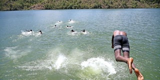 Cheploch divers dive into Kerio River bordering two counties of Baringo and Elgeyo- Marakwet in the past. The youth attract tourists to the area. FILE PHOTO | NMG
