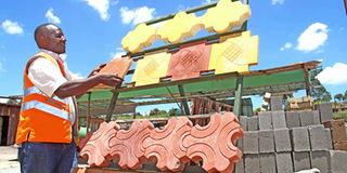 The colored paving blocks sell at Sh1,400 per square metre, coloured tiles at Sh1,200 per square metre, ordinary paving blocks Sh900 per metre square, fencing posts at Sh1,500 and hollow blocks at Sh70 for six inches and Sh80 for eight inch.