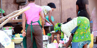 Mama Omollo’s eatery, popularly known as ‘kibandaski’, situated near Prestige Plaza, Ngong Road, is a buzz of activity as consumers flock the food stall for lunch.