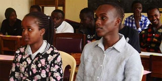 Jasmine Nkatha (front left) of Kaaga Girls High School and Brian Munene (front right) of Moi High School, Mbiruri and other students during a technology workshop in Meru County. PHOTO | FAUSTINE NGILA
