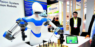 A robot moves chess pieces on a board against an opponent at the 2017 Consumer Electronic Show (CES) in Las Vegas, Nevada. Data scientists says Kenya has to invest in skills and knowledge. AFP PHOTO | NMG