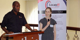 LocateIT managing director Erick Khamala with University of Sheffield’s Rose Pritchard during the AfriCultuRes workshop at the Crowne Plaza in Nairobi last week. PHOTO | SIMON LIBAFU
