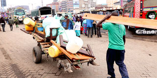 A handcart arrives at Machakos Country Bus with household goods. PHOTO | DIANA NGILA | NMG