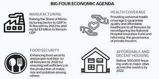The Treasury should have taken advantage of the Big Four agenda and shaped it into a masterplan or blueprint, spelling out links in its agenda, strategy or policies, with a full results matrix for resource allocation, as well as implementation monitoring and evaluation frameworks for each ministry, department or agency (MDAs). The lack of implementation plans at county level is glaring while some pillars clearly are devolved functions.