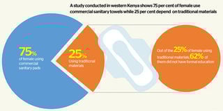 A study published on the Journal of Women’s Health in 2015 found that 25 per cent of women in rural western Kenya used materials such as torn cloth and paper in place of sanitary pads.