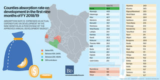 This means the two counties only spent 9.4 percent and 9.5 percent of their development budgets in the nine months (July 2018-March 2019), correspondingly -- a trend that could see them spend less than half the budget end of June 2019.