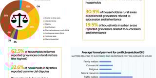 “Survey findings show that a higher proportion of households in the rural areas (30.9 per cent) experienced grievances related to succession and inheritance compared to urban areas (19.5 per cent),” the KNBS said.