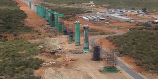 Construction of Standard Gauge railway bridge piers at man-eaters section in Tsavo: The track that will be elevated on bridges to allow for wildlife migration and movement. FILE PHOTO | JEFF ANGOTE |