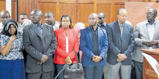 Some of the NYS theft suspects in court. PHOTO | FILE