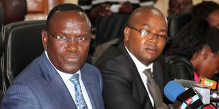 Health CS Dr Cleopa Mailu (left) with PS Nicholas Muraguri during a Press conference at Afya House on October 30, 2016. PHOTO | DENNIS ONSONGO