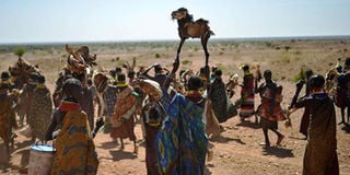 Turkana women hold dead animals they lost due to a biting drought on March 20, 2017. Turkana is classified as the poorest county in the 2016 survey. AFP PHOTO | TONY KARUMBA