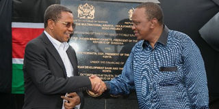 Presidents Jakaya Kikwete (left) and Uhuru Kenyatta. PHOTO | SAMUEL MIRING'U